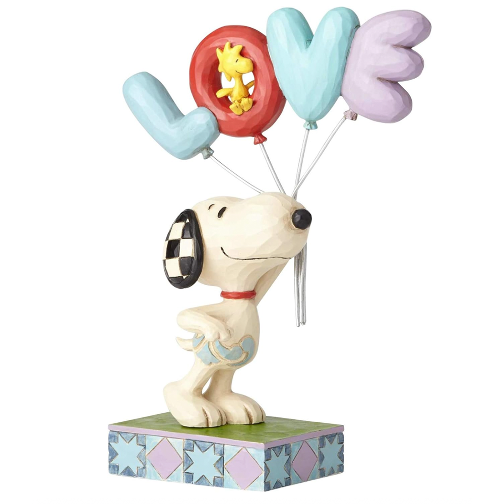 Fall in love with this darling Snoopy and Woodstock piece! Designed by acclaimed folk artist Jim Shore, Snoopy admires his colourful balloons spelling out LOVE, while Woodstock happily perches within the letter O. In Jim's signature style, Snoopy is adorned in traditional folk art patterns and motifs while a blissfully happy expression graces his adorable face. The delightful duo poses atop an inticately hand painted base with a lavender and blue pattern that perfectly complements the scene. This lovely piece makes a sweet gift for your loved one on any day of the year.