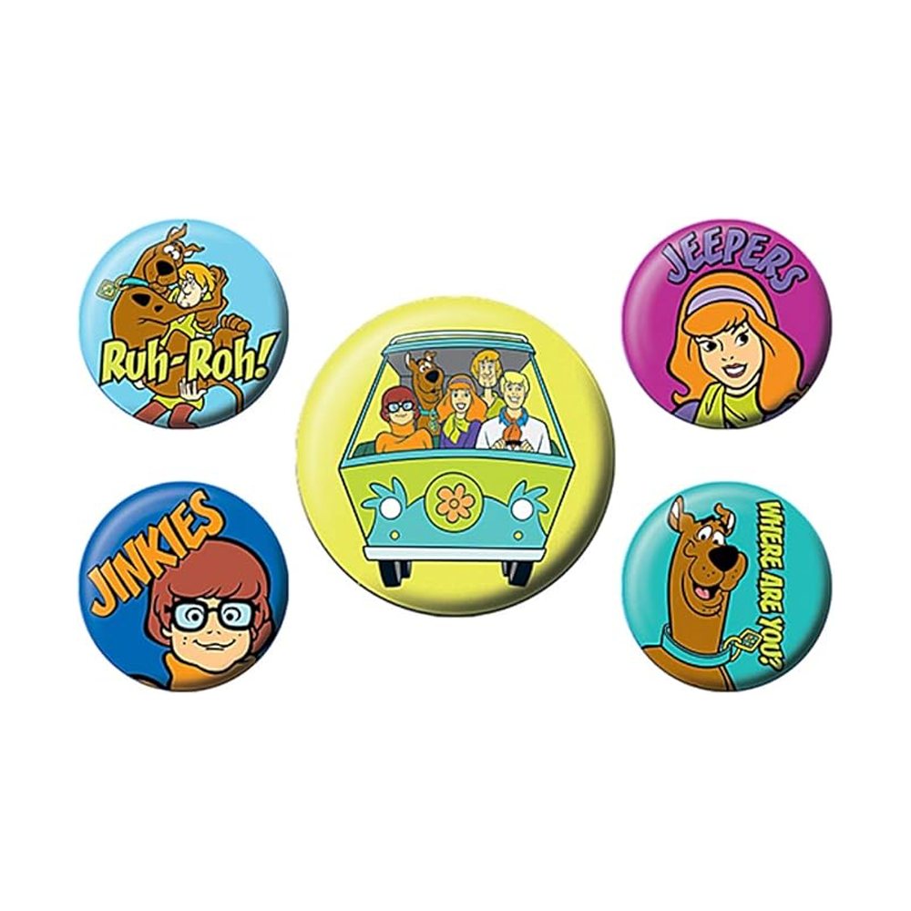 Jeepers Scoob! Add a little TV nostalgia to your favourite outfit or work bag with this colourful badge collection from everyone's favourite detective Scooby Doo. Don't leave your home without Mystery Inc, Shaggy, Velma, Fred, Daphne and of course, Scoob.