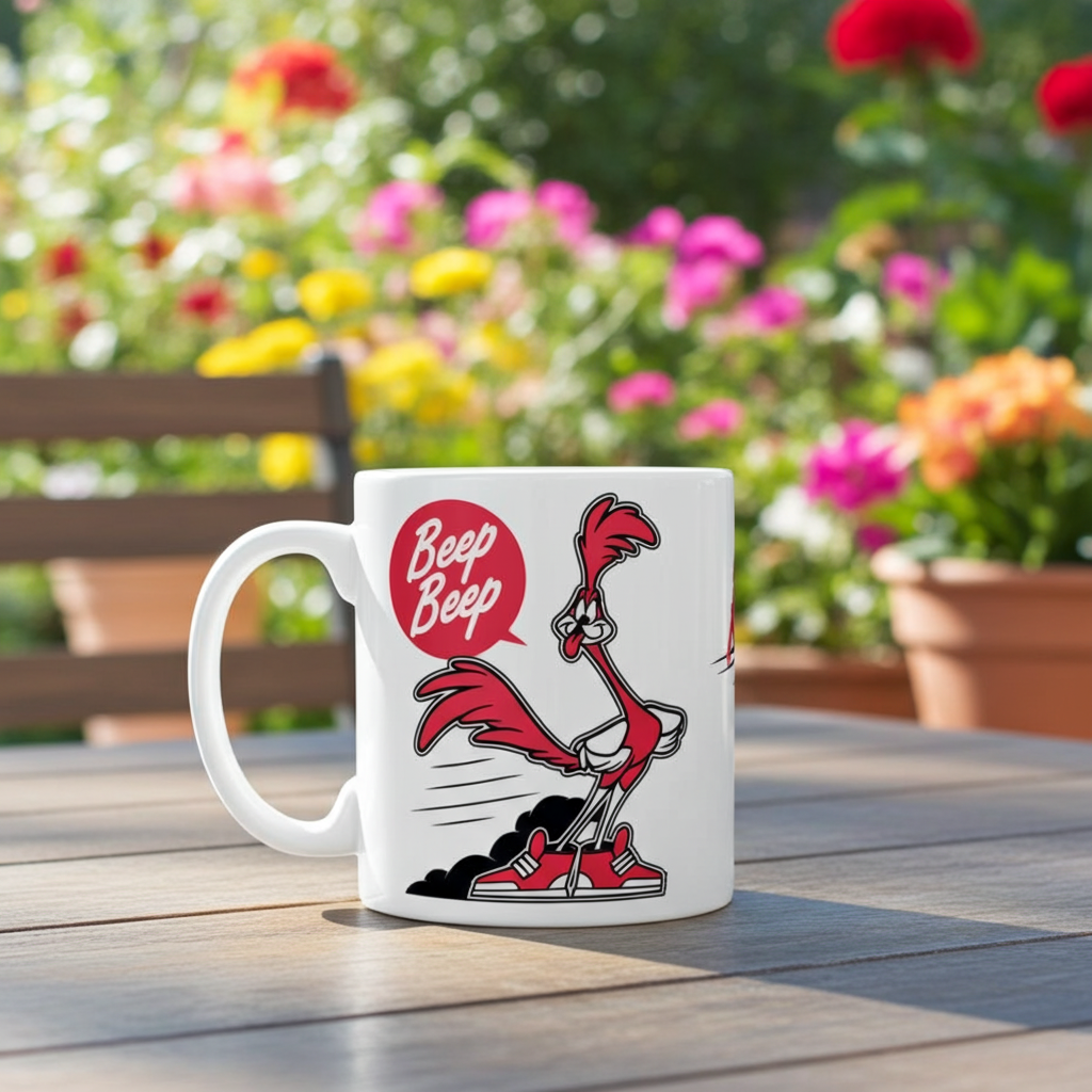 Beep Beep, start your day running with this Beep Beep Road Runner Ceramic Mug!